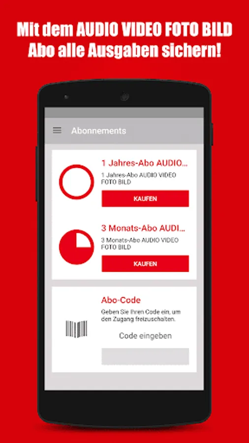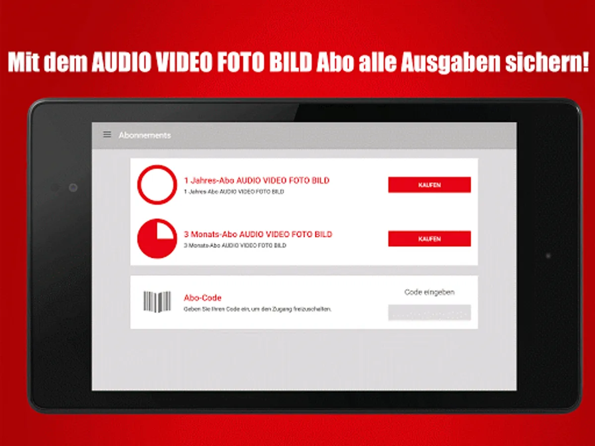 The AUDIO VIDEO FOTO BILD a You can now also subscribe to - and conveniently pay via Google Play. 3 months cost 6.99 euros and a year's for 25,99 Euro. Single copies are also available for each 2.99 euros. Billing is easily accessible from the Google Account.