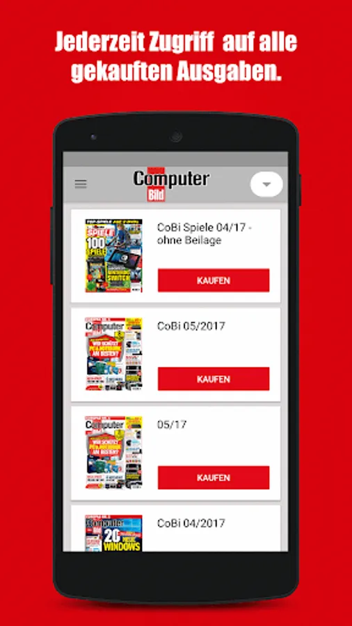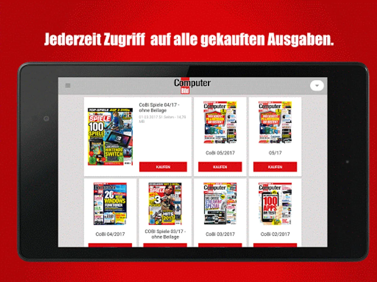 With this app you can buy the latest issue of COMPUTER BILD for 1,99 Euro and the current COMPUTER BILD SPIELE for 2,99 EUR.