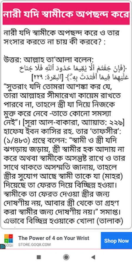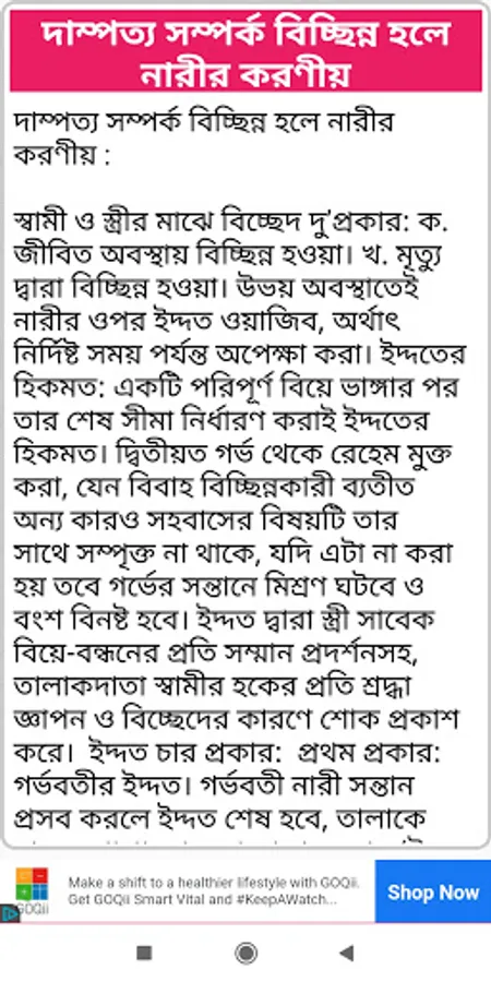 Islam has placed women in a dignified place. Islam has given women all their rights back. Islam is a universal and eternal life system. In Islam, there is recognition of women's dignity, dignity and all rights, there is a comprehensive program to protect their chastity and establish dignity. Islam has imposed hijab on them to keep their honor, dignity and chastity intact. We have created this app with all the provisions of women in Islam. Through this app, women will be able to know about their rights. The role of the ideal woman in the eyes of Islam, movement, veil, speech, worship and responsibilities and many other issues including family life and husband's service have been discussed.