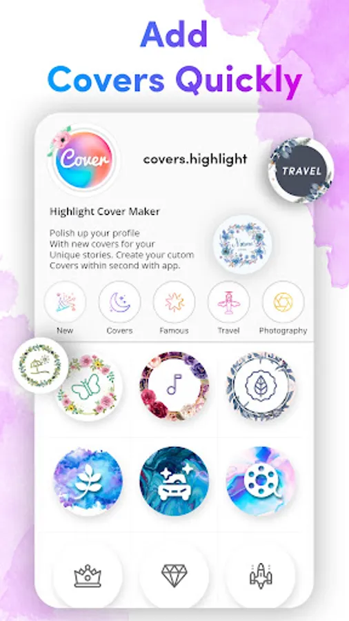 Cover Highlights + Logo Maker is used to create covers for your daily highlights over instagram. With Cover highlights you can personalize your profile according to your choice by choosing or creating custom covers. Make your profile beautiful and attractive within minutes to make an impression on your followers.