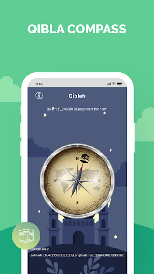 Ushbu Namoz ilovasida raqamli va ishonchli qibla topuvchi mavjud boʻlib, u dunyoning istalgan nuqtasida qiblaning toʻgʻri yoʻnalishini topishga yordam beradi.