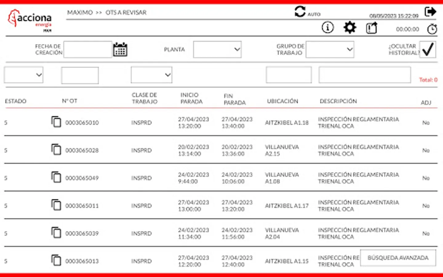 Maximo Mobile is an Acciona Energía application that allows technicians to consult and report the Ots of wind facilities assigned to them, as well as review the plans for the next few days