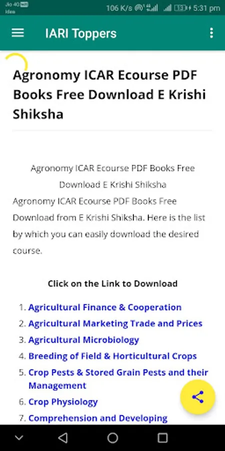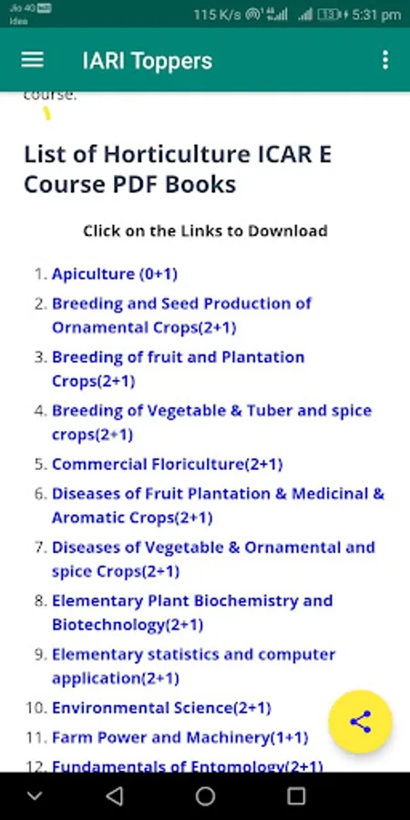 Recently we have added some new features like - Agronomy e course PDF, Horticulture E Course PDF Download , Dairy Technology PDF Download E krishi Shiksha.