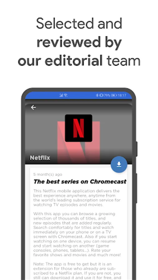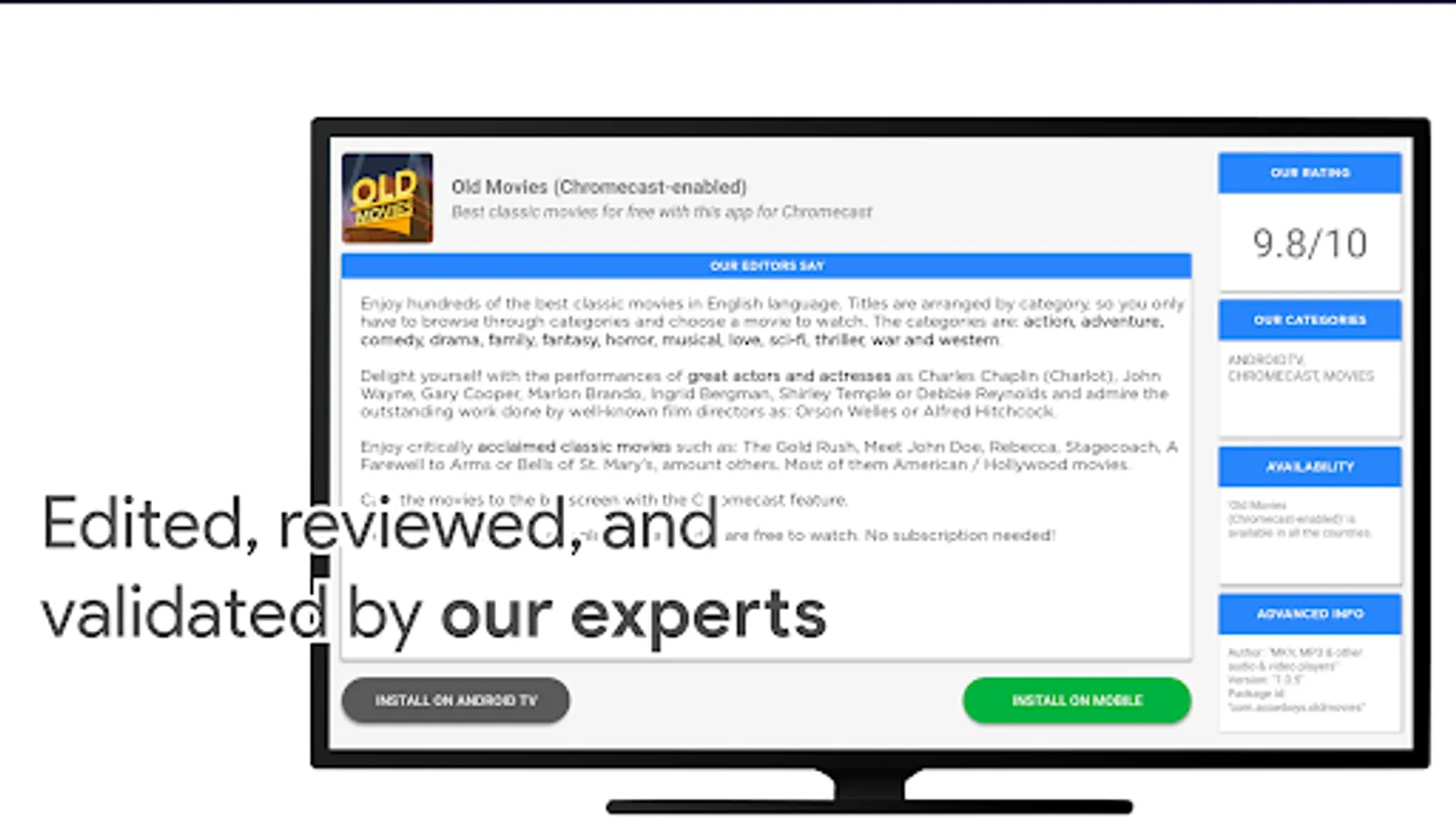 • Install the best apps to get the most out of your Google Chromecast, Chromecast built-in TVs , Google TV or Android TV and keep posted about new releases.
