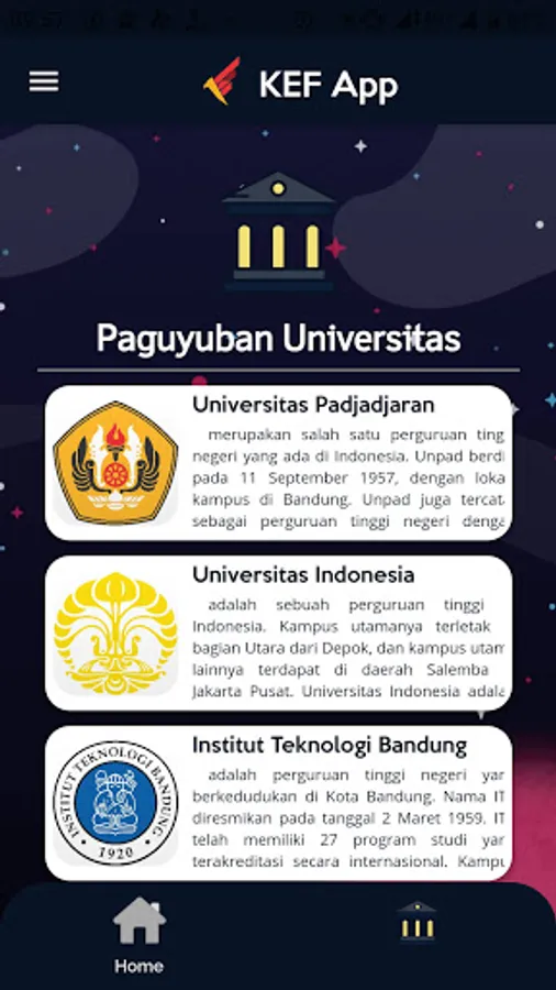 Karawang Education Fair © (KEF) is a series of annual events organized by the Karawang 1 High School Alumni Association with support from many parties for high school / equivalent students, especially class XII in Karawang Regency.