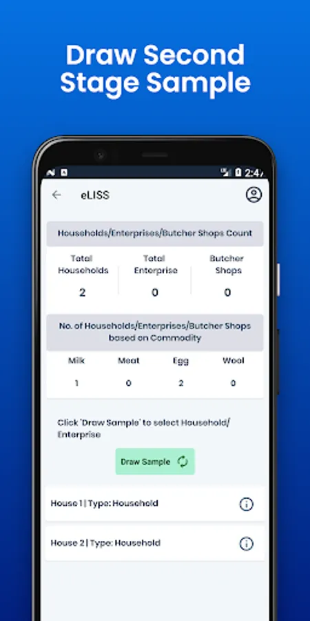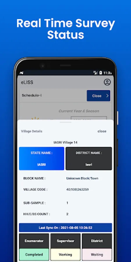 An android based application for data collection has been developed to capture data from the field which is collected manually using paper-based schedules by the enumerators. All the eight schedules of Integrated Sample Survey (ISS) scheme have been designed in the data collection application with all the fields and entries. This data collection app also draws second stage sample i.e. households/enterprises by using the list of households/enterprises captured in schedule-II as sampling frame. The data captured through this app will be synced to server by the enumerator. The data collected by the enumerator will be verified at supervisor and district nodal officer level which can be viewed by the States/UTs.