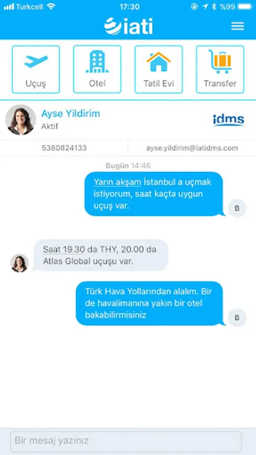 You can instantly chat with the travel assistant, get information about the product and purchase.