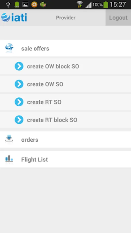 The IATI Provider Android application covers flight tickets. The IATI application covers all the system modules a supplier may require.