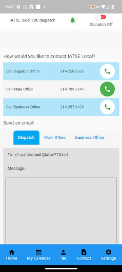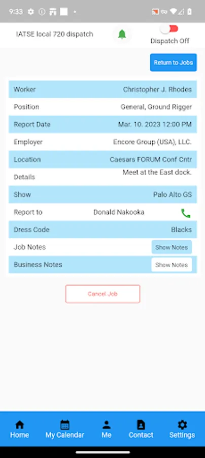 You must be an active referent of IATSE Local 720 in Las Vegas, NV to use the Dispatch Mobile Application