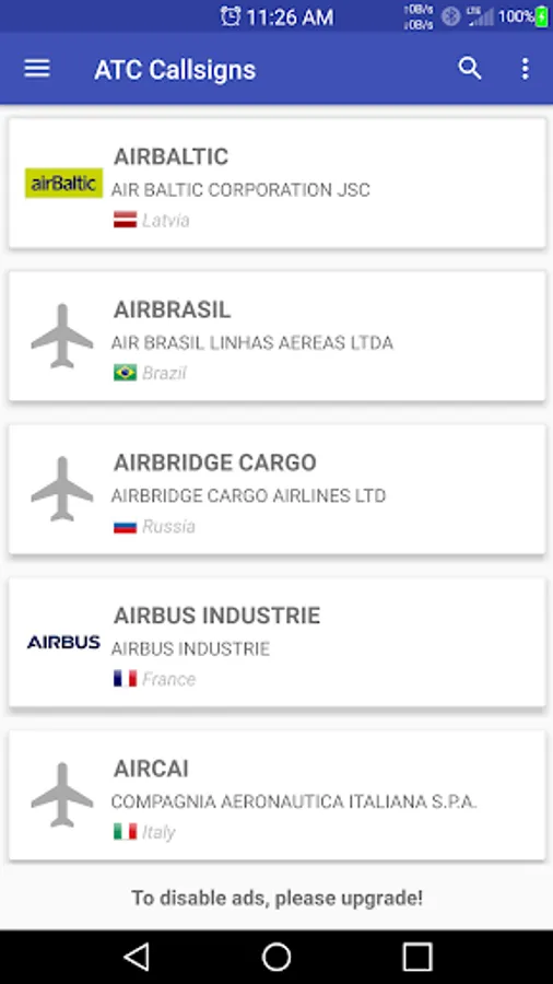 ATC Callsigns contains the latest list of air traffic control callsigns for airlines and aircraft operators. This is a great companion app for air traffic controllers, plane spotters, pilots, and aviation enthusiasts everywhere!