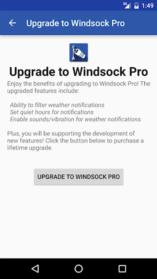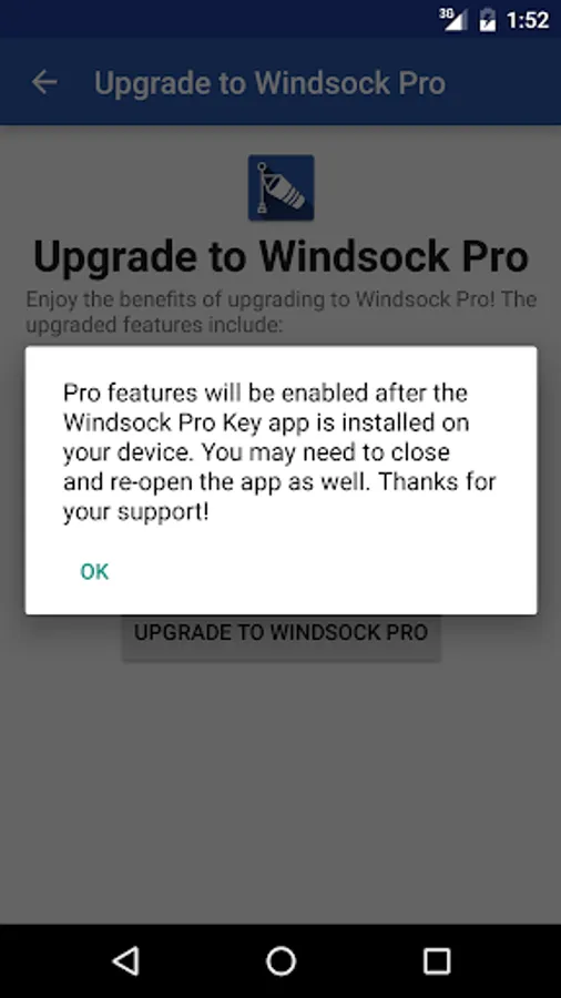 This app will unlock Pro features on your device for the Windsock for Android app.