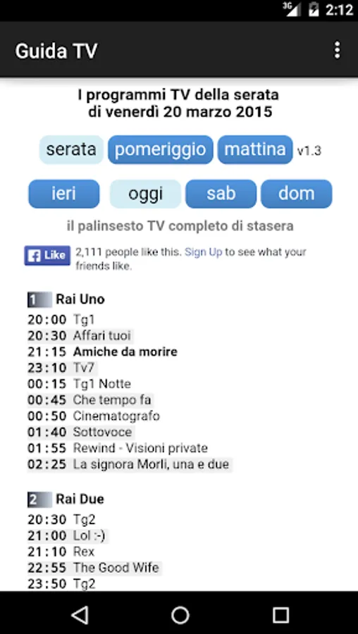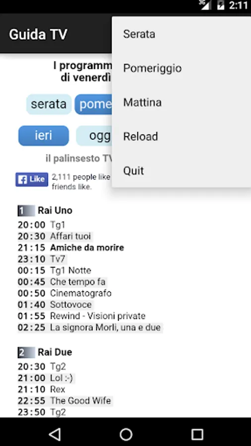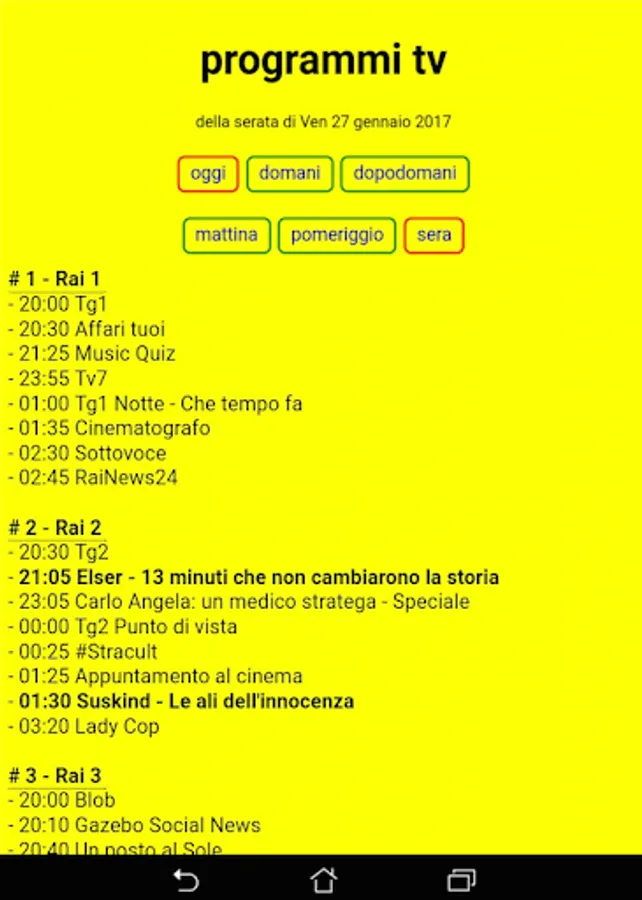 la guida ai programmi TV dei canali italiani piu' importanti: