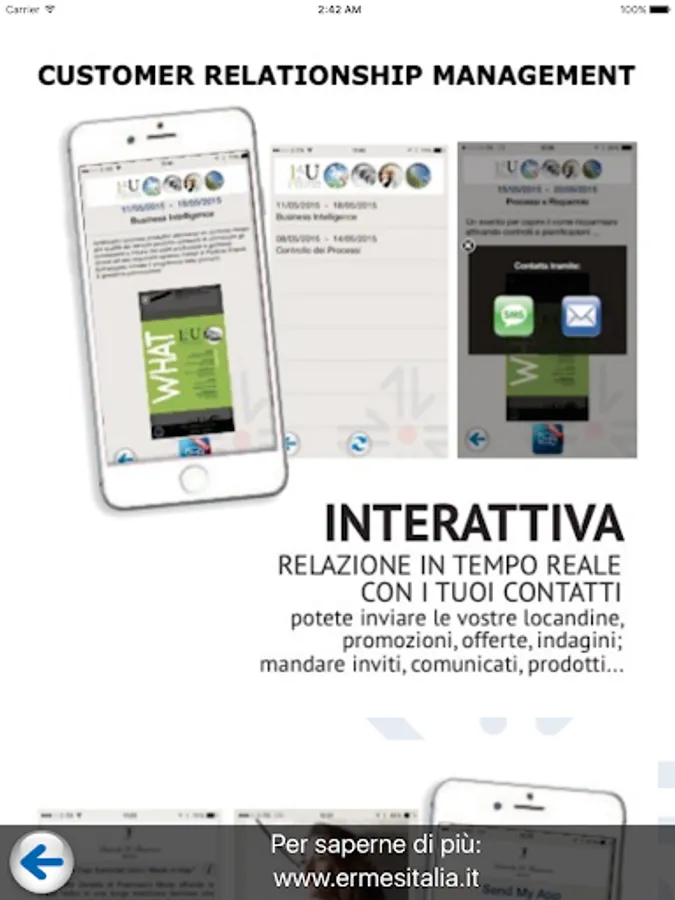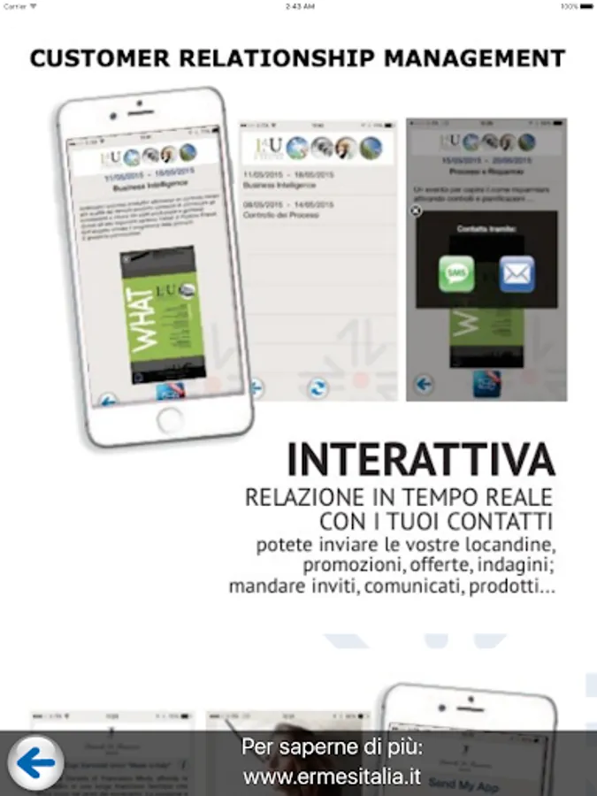 Every person, employee or collaborator has full autonomy in managing their APP IBA and the company can supervise the contents, statistics and messaging of all APP and share all in a single database.