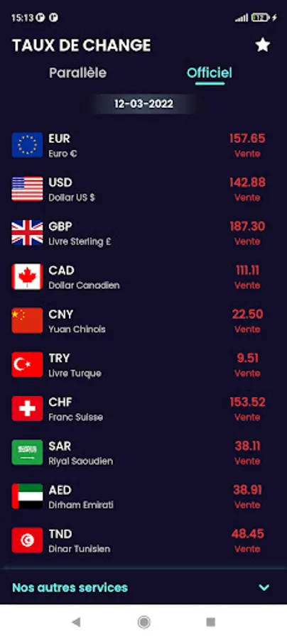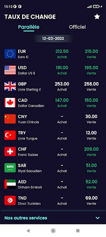 ChangeDA is a Mobile Application which collects exchange rate information from the Pound (£), Euro (€), US Dollar ($) and Canadian dollar (CAD) dollars against the Algerian dinar on the parallel market at several points in Algiers .