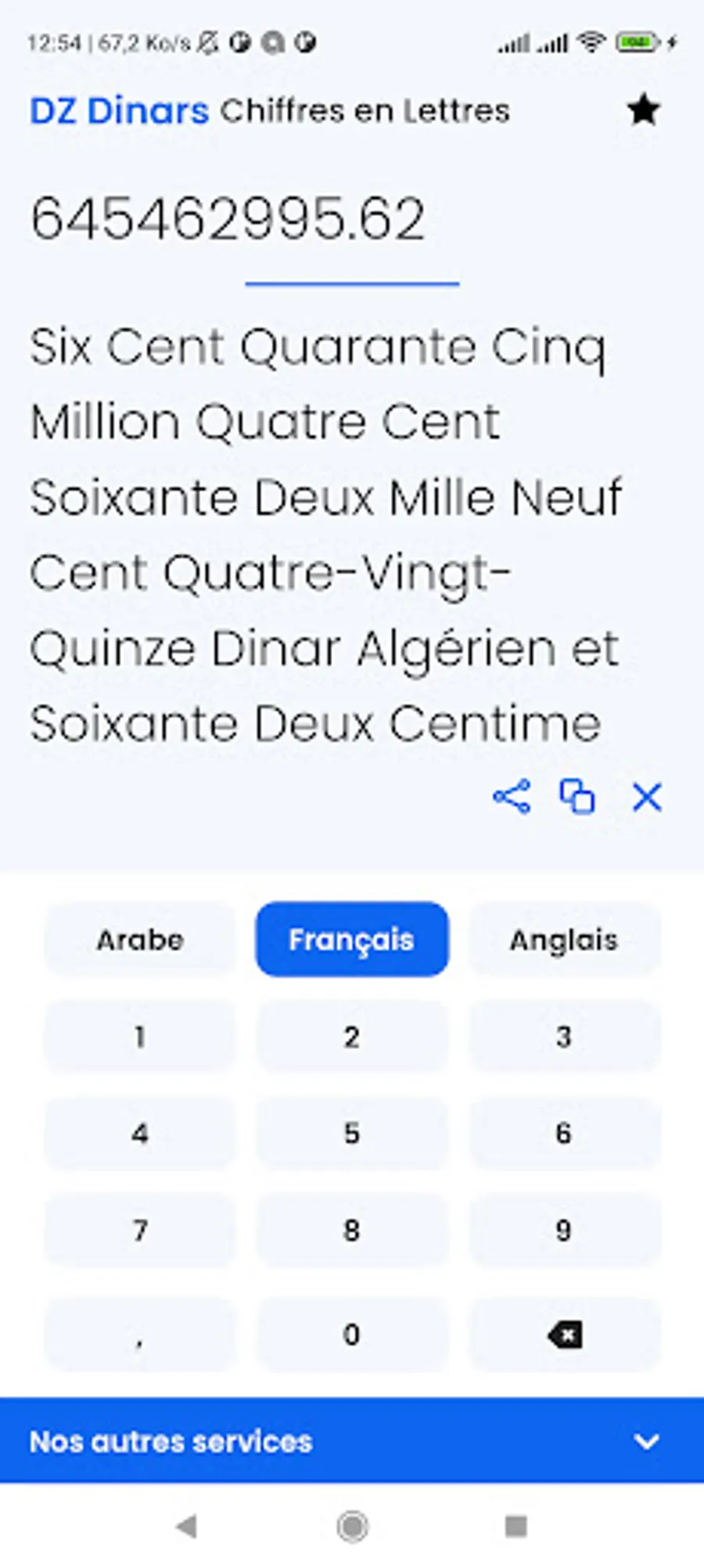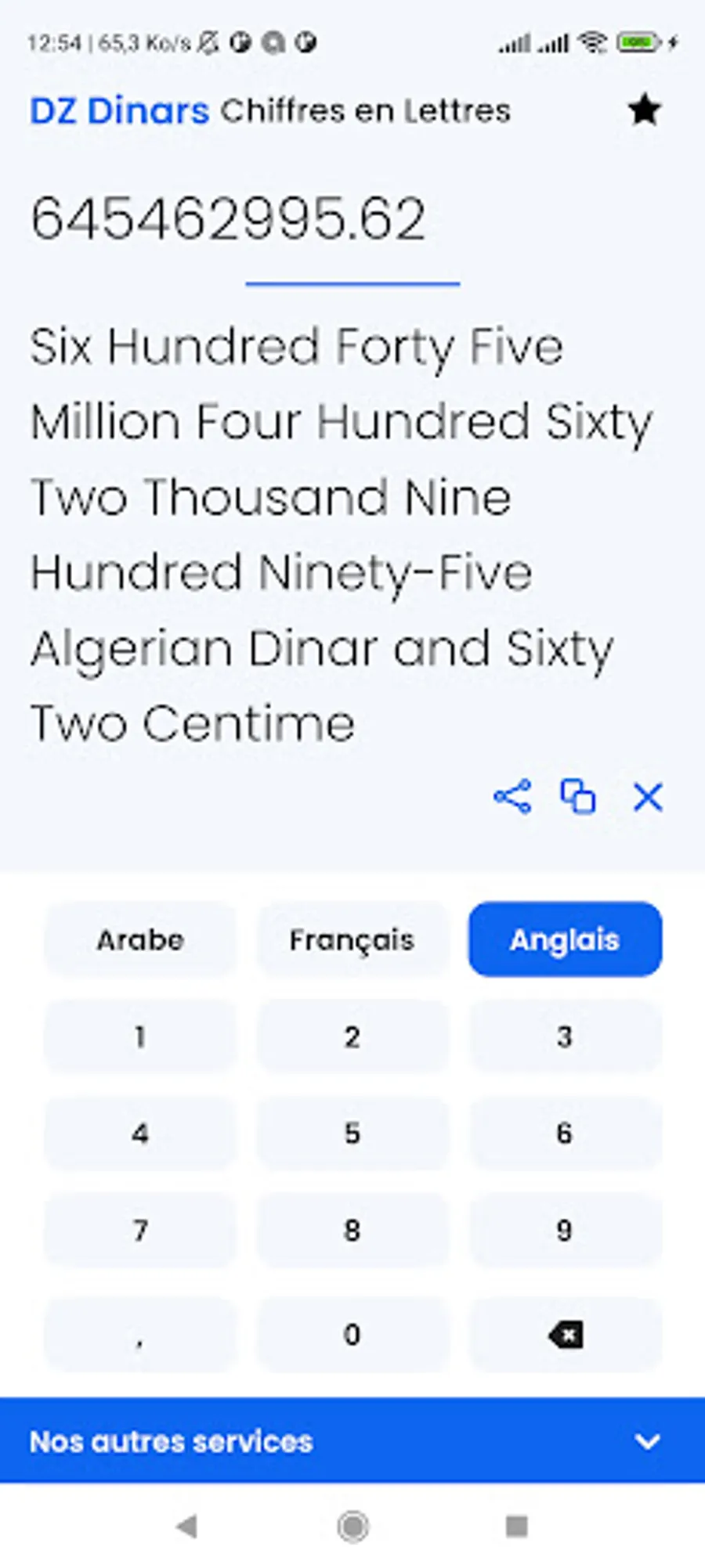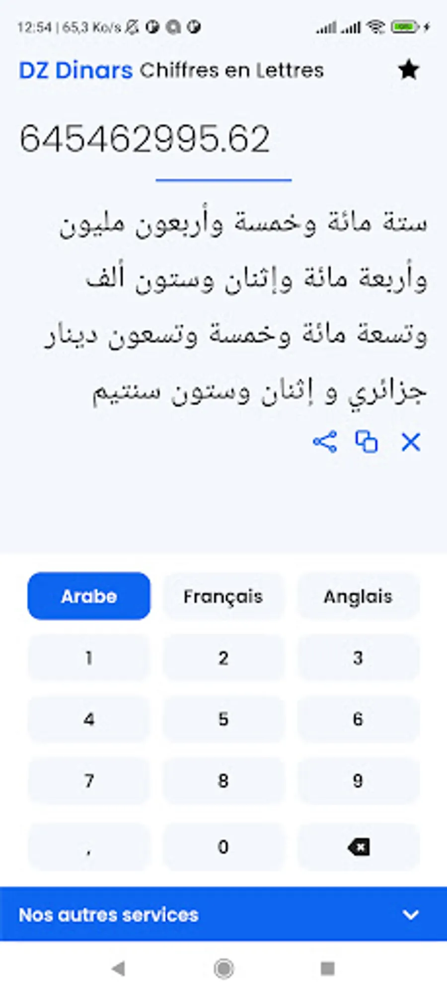DZ Dinars Numbers to Letters is a converter of numbers to letters, which can help you fill in your postal checks as well as the amount of your invoices.