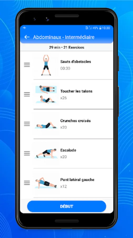 The app offers exercises for your abs, your chest, your arms and your buttocks, as well as exercises for the entire body. All exercises are designed by experts. None requires equipment, there is no need to go to the gym. Even if it only takes a few minutes a day, it can effectively strengthen your muscles and help you get chocolate squares from home.