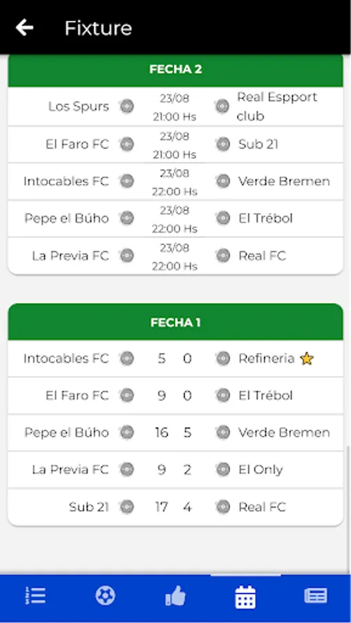 Find out in real time about the latest news through our notifications and know the details of each game (goals, cards, figures, photos and videos).