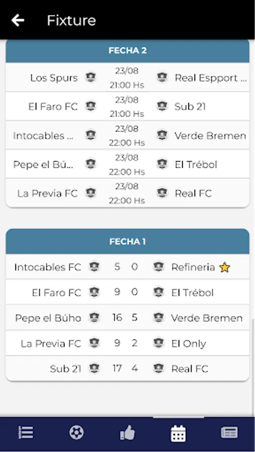 Find out in real time about the latest news through our notifications and know the details of each game (goals, cards, figures, photos and videos).