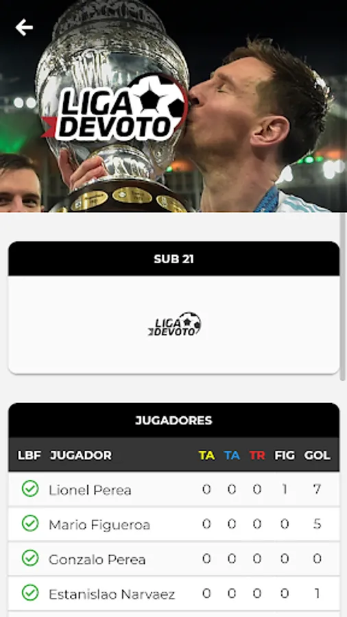 Always have all the information about your tournament at hand. You can check results, scorers and all its statistics.