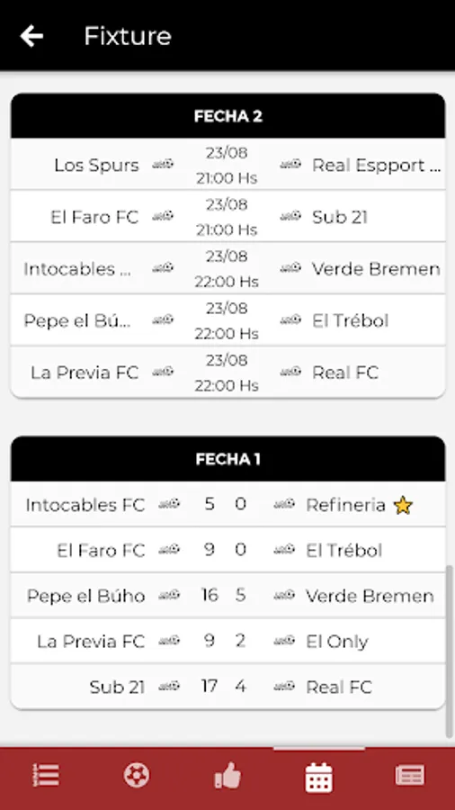 Find out in real time the latest news through our notifications and know the details of each match (goals, cards, figures, photos and videos).