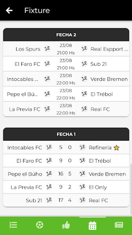 Find out in real time about the latest news through our notifications and know the details of each game (goals, cards, figures, photos and videos).