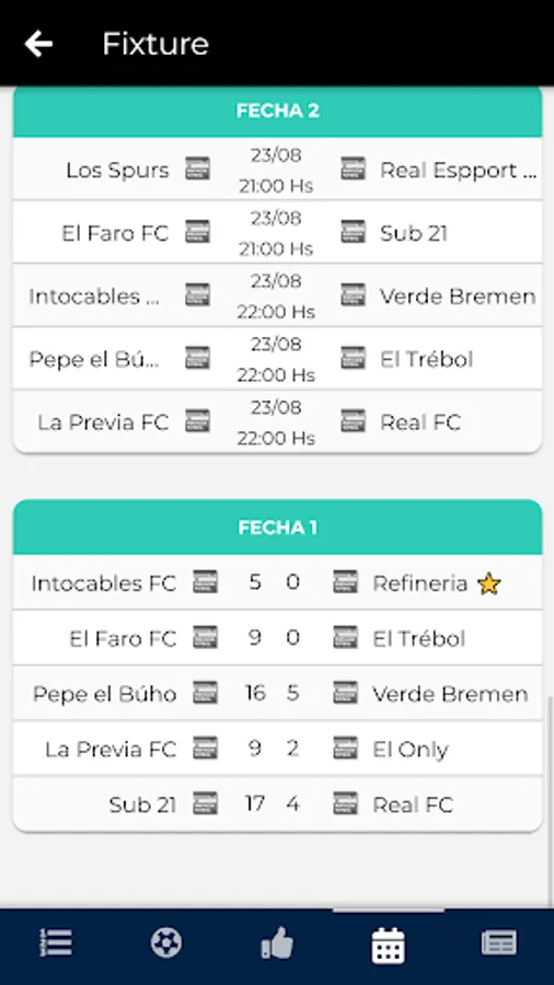 Find out in real time about the latest news through our notifications and know the details of each game (goals, cards, figures, photos and videos).