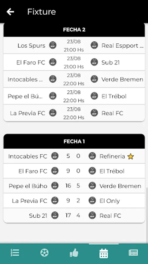 Find out in real time about the latest news through our notifications and know the details of each game (goals, cards, figures, photos and videos).