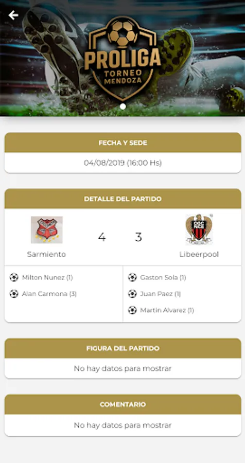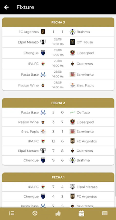 You'll also have access to the complete schedule and see all the matchdays, past and future, with their respective fixtures. You'll be able to see which teams have already faced each other, along with their results, and what the upcoming matches will be. And if you go to a played match, you'll be able to access the match details, as if you were watching a match summary, and see who scored the goals, who received cards, who the standout players were, and what comments were made about the match.