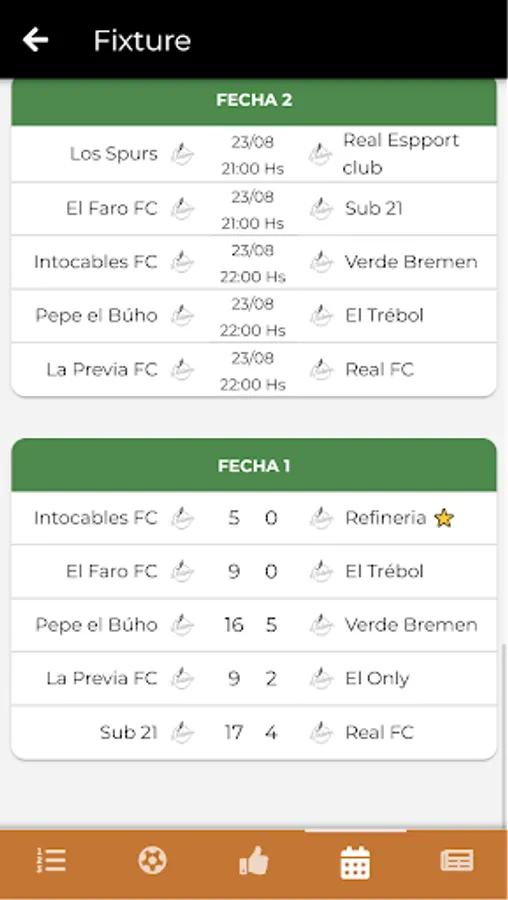 Find out in real time about the latest news through our notifications and know the details of each game (goals, cards, figures, photos and videos).
