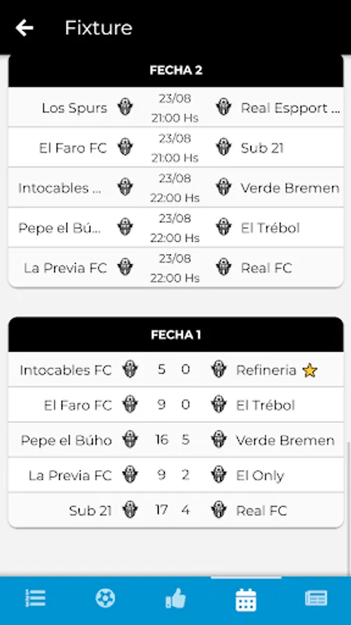 Find out in real time about the latest news through our notifications and know the details of each game (goals, cards, figures, photos and videos).