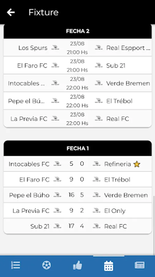 Find out in real time about the latest news through our notifications and know the details of each game (goals, cards, figures, photos and videos).