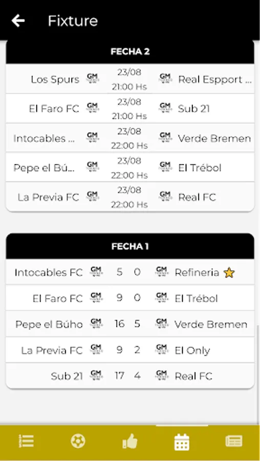 Find out in real time about the latest news through our notifications and know the details of each game (goals, cards, figures, photos and videos).