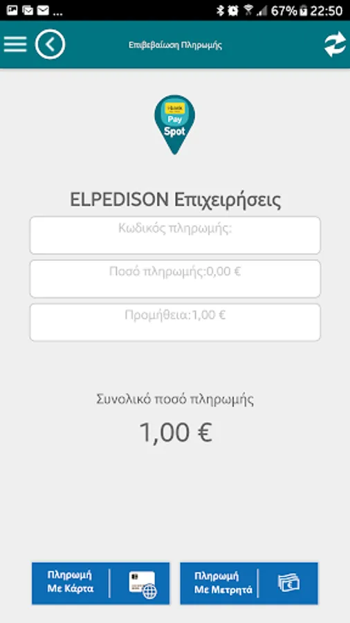 After the transaction, you receive proof of payment from the National Bank. Evidence indicating a unique number so that you can always look for the fate of your payment by calling the Call Center of the National Bank 18 18 18. Just as you would if you pay from any branch of the Bank or through electronic channel i-bank (i-bank Internet, Phone & Mobile Banking, ATM, www.simplepay.gr)!