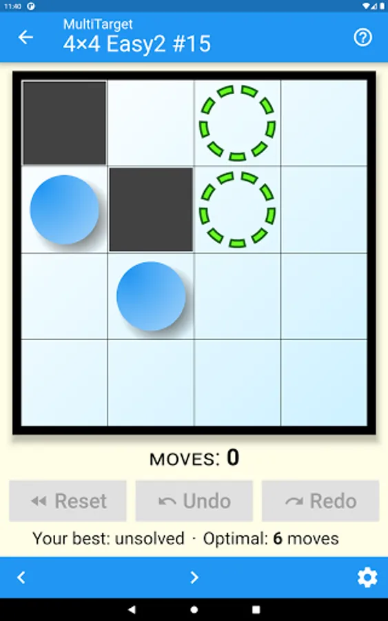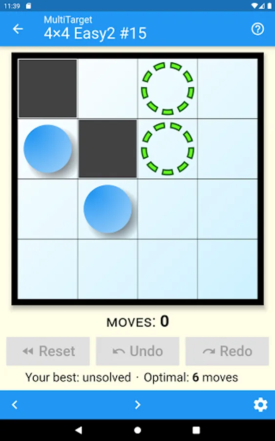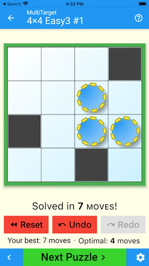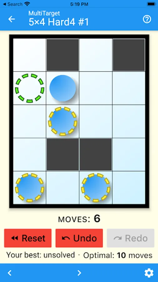 MultiTarget (Multi Target) is a logic puzzle that will challenge your brain! Move all the seekers on to the targets, but watch out for obstacles. All seekers move in the same direction unless blocked. Use the obstacles to change the relative positions of the seekers. Over 400 puzzles (from easy to mind-bending) to provide weeks and months of challenge!