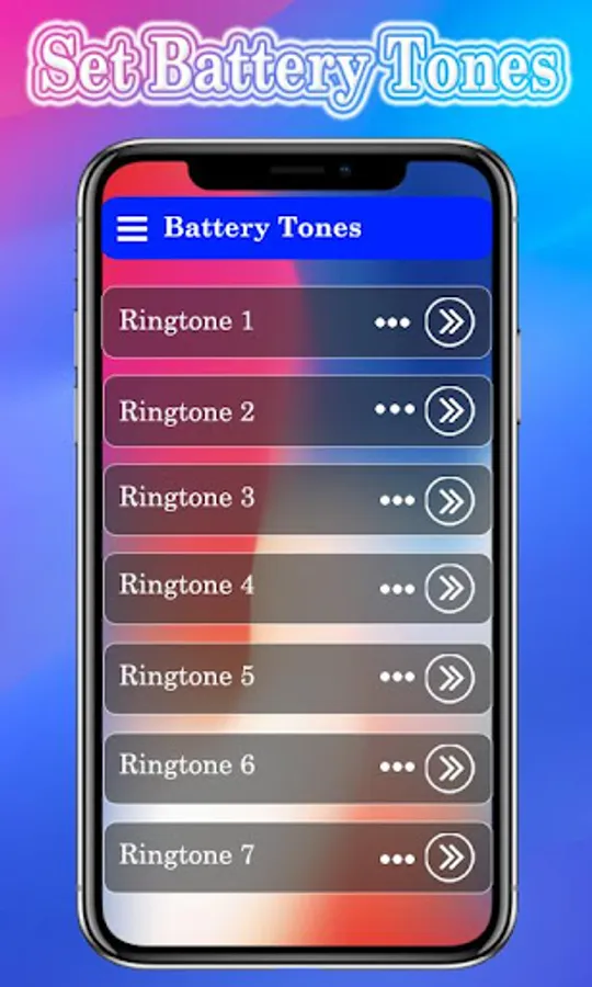 Get the ibattery charge tones and don’t worry about battery charging. This app give you sound notification whenever you plug/unplug the charging cable with battery charger. The collection of icharging tones provides the battery status in the form of battery percentage and you can set any favorite ibattery tones as charge tone for your phone. Set the ibattery tone and listen to the icharging tones while connecting/disconnecting charging cable from your phone.
