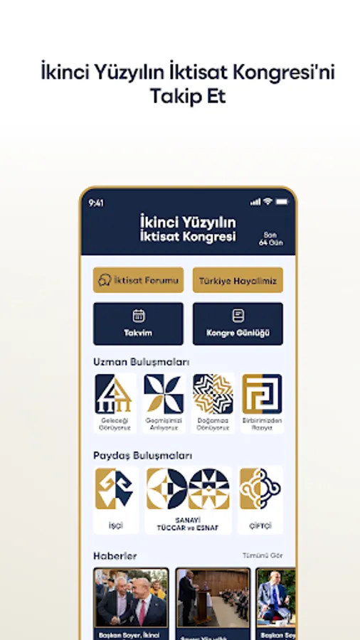 With the Second Century Economics Congress mobile application, you can get information about the events to be held during the congress, follow the events live and learn the conditions of participation. You can also participate in surveys to be opened in the forums. All information about the Second Century Economics Congress is in this mobile application.