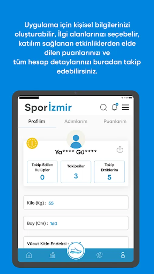 • With Sporİzmir, which works integrated with the health application of your device, you can see and control the information of every activity you perform.