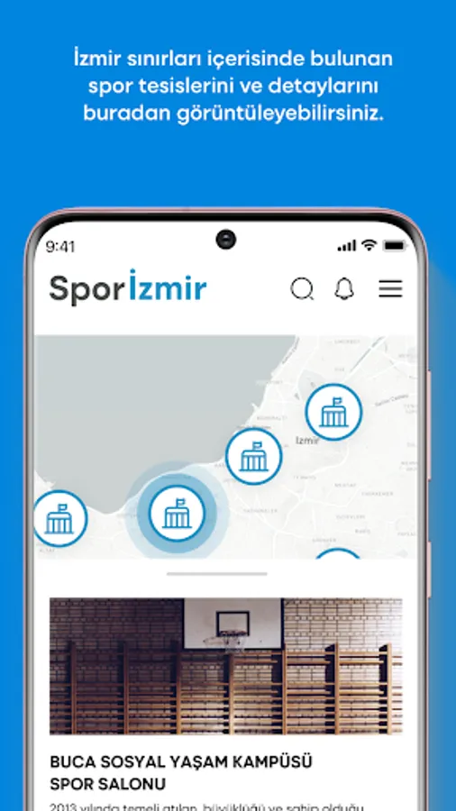 • You can see all the sports events that will take place in Izmir, sports facility information and how to reach them, and get directions.