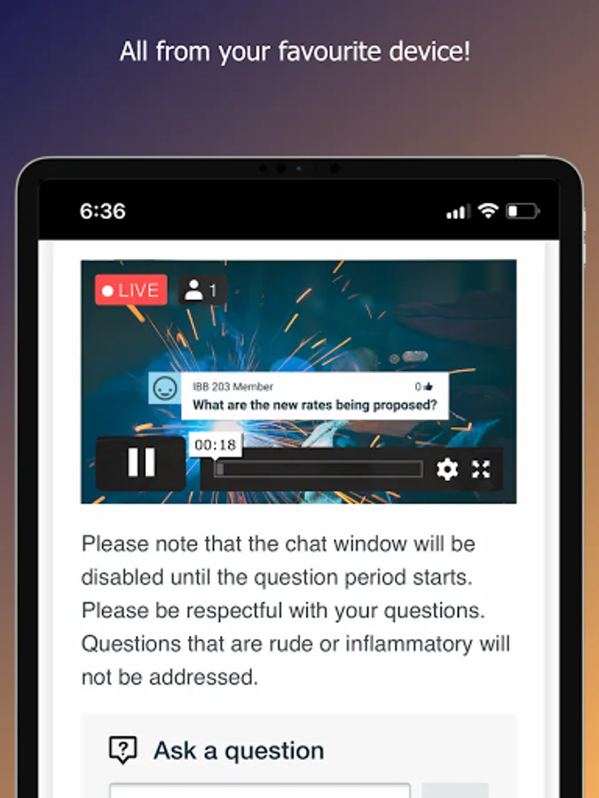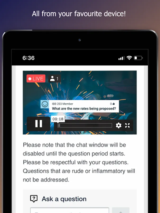 Keep up to date with your Union using the Boilermakers Local 203 live broadcast application. Watch live streaming business manager updates on your mobile device from the comfort of your home. Interact with your Union by asking questions and responding to polls.