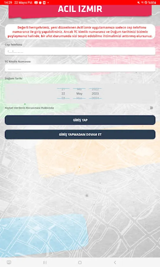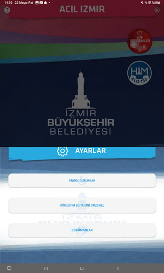 Offical Application of AcilIzmir. Citizens of Izmir, can use this application to requesting a rescue from Izmir Municipality Metropolitan's officals after an earthquake.