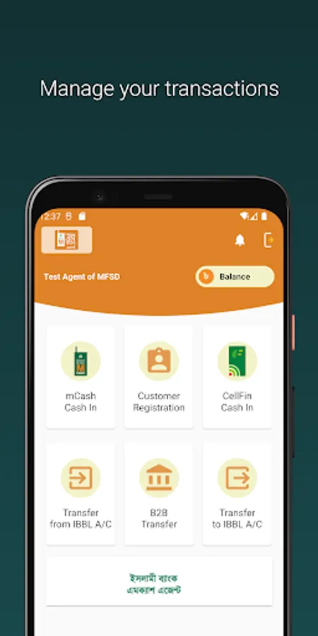 Islami Bank mCash, mobile financial service licensed by Bangladesh bank playing vital role in the financial inclusion of the country since 2012 . mCash agent app is developed for managing day-to-day transactions & activities of mCash agents.