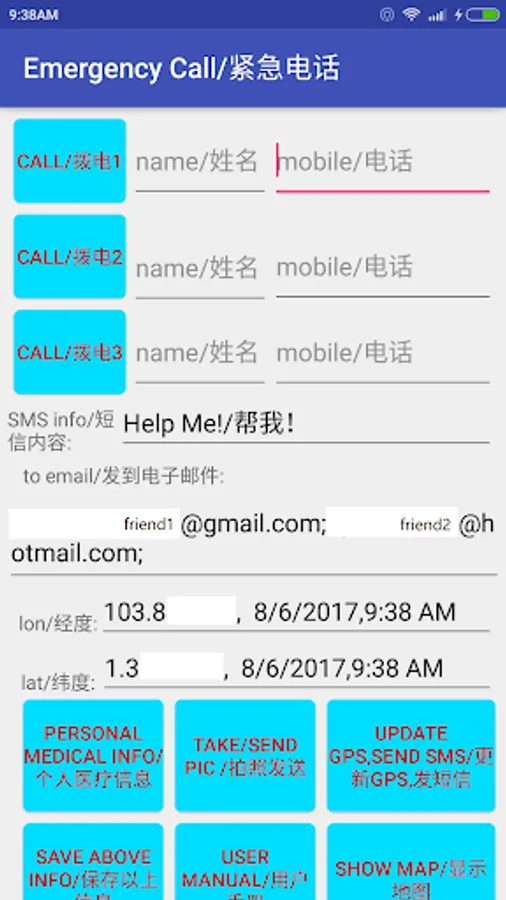 life saver SMS/Call will be sent out immediately once APP launched!
