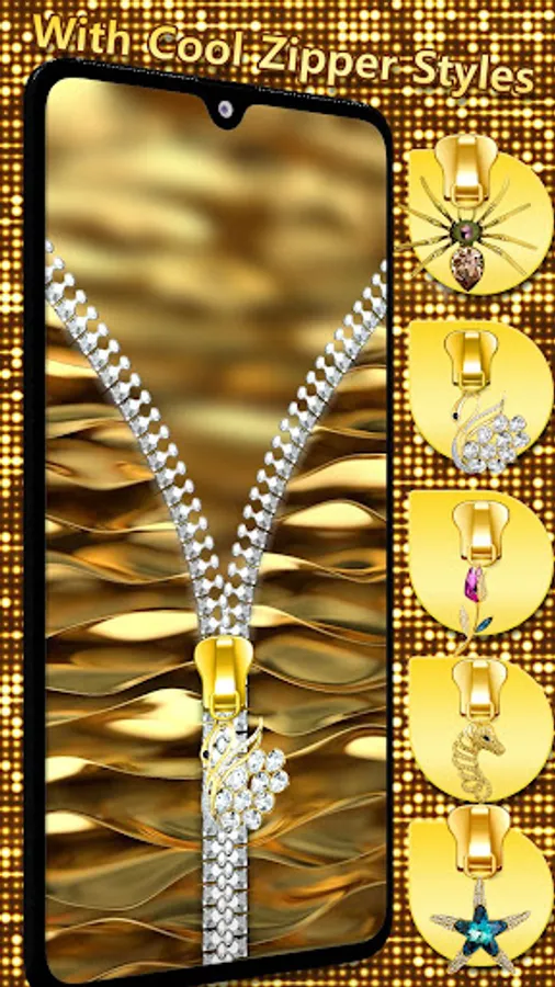 This gold screen lock contains multiple collection of stylish gold zipper which makes this zipper screen lock more attractive and beautiful.