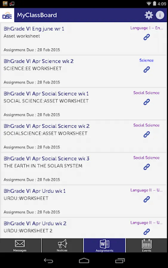 MyClassboard provides communication app for DSE parents using which they can download school announcements, Class assignments, Events.