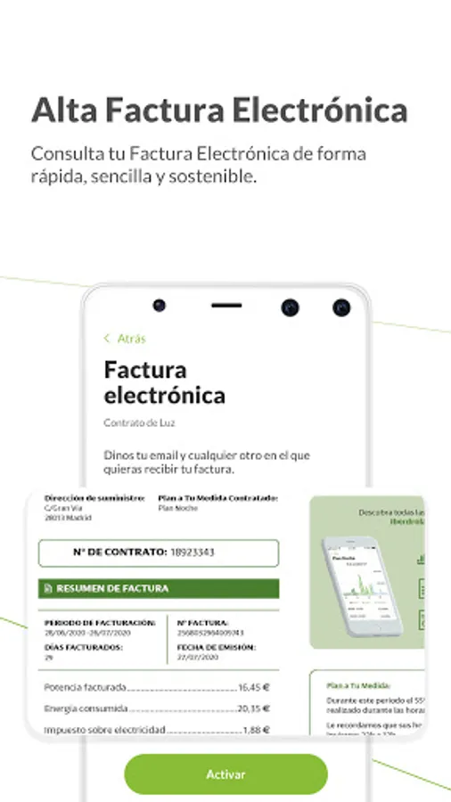Sign up for the Electronic Invoice and bet on speed, simplicity and sustainability. Immediate, comfortable, ecological and with legal validity, it will allow you to consult it from the moment it is issued and anywhere.