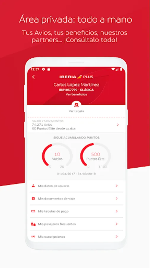 Sign up and manage your profile in your Private Area: travel documents, credit cards, frequent passengers ... Take your Iberia Plus cards on your mobile and view them comfortably. Check your accumulated Avios balance with us or our partners. Enjoy discounts and promotions in restaurants, technology, leisure ... This is our exclusive loyalty program.