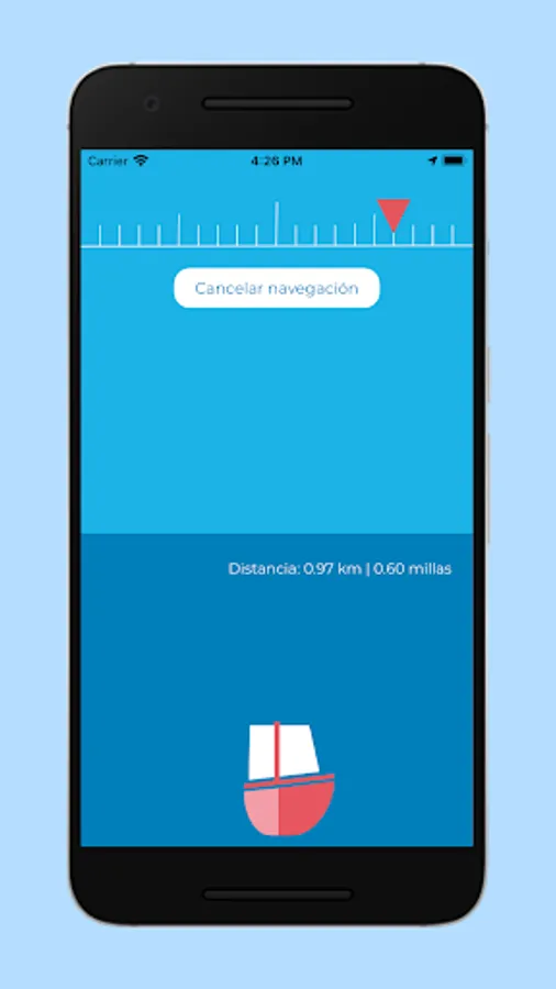 and ... Navigation towards the brand! A simple screen will guide you in navigation towards the mark indicating the current speed, the remaining distance and an indicator at the top will help you know if you should turn the rudder to one side or the other.