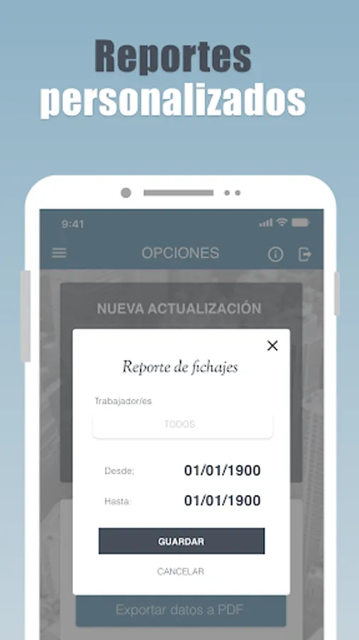 Laboral App is an application designed for businesses that allows you to synchronize and share the control of your employees' day, making it possible to record entries and exits, as well as taking control of the company's personnel and their data. It incorporates the export to PDF of the necessary records, filtered and limited to the needs, to comply with Royal Decree-Law 8/2019, of 8 March, on urgent measures of social protection and the fight against job insecurity in the work day