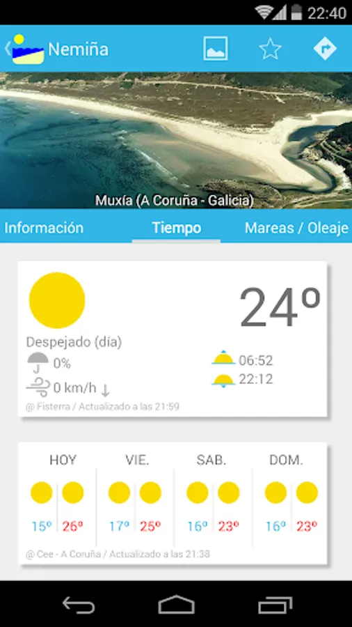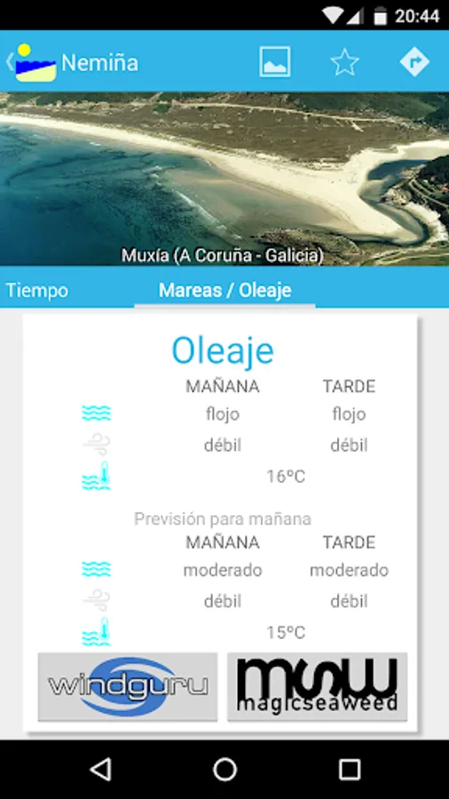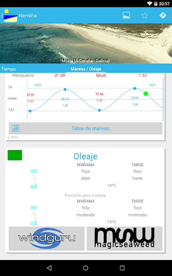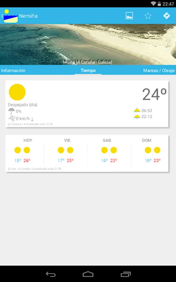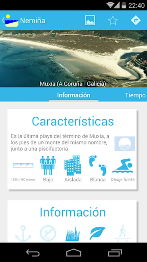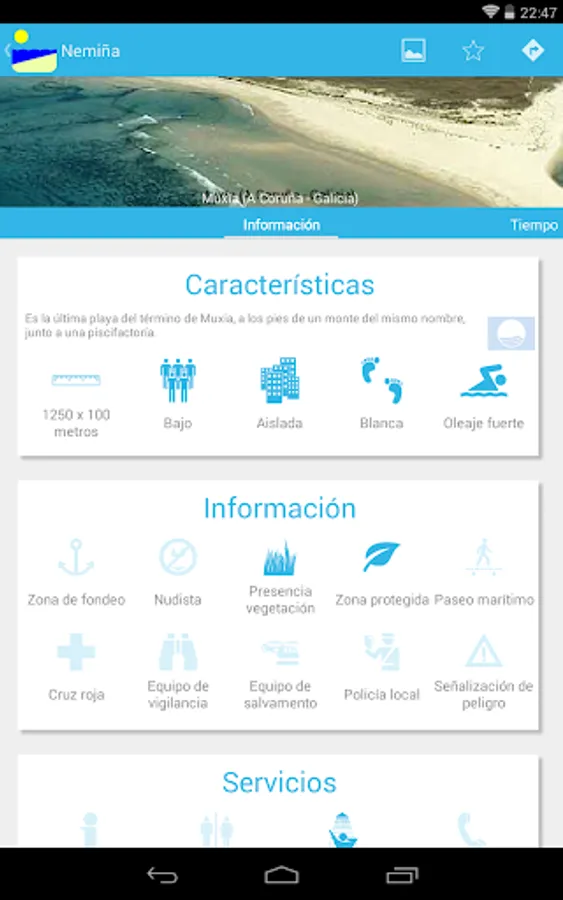 - Weather Information and sea state in real time as well as its forecast, tides, water temperature, etc.
