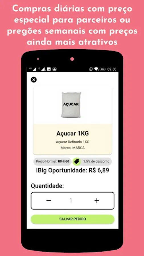 Conventional market: Every day during business hours, when selecting the product and put in the cart Big Partner already able to see the discount APP.
